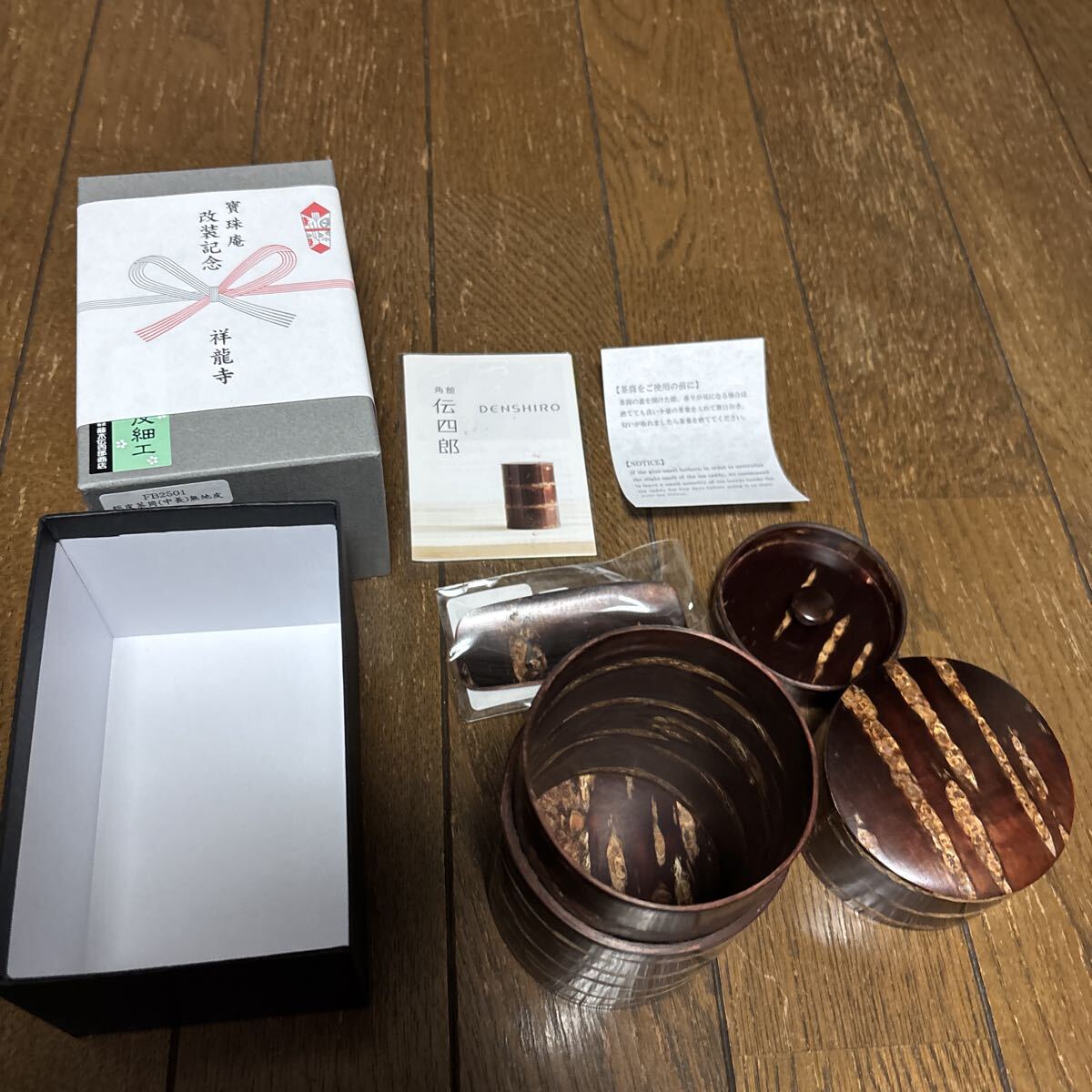 > 桜皮細工 未使用品♪茶入れ FB2501 総皮茶筒〔中長〕無地皮 角館 伝四郎 藤木伝四郎商店 伝統工芸 樺細工