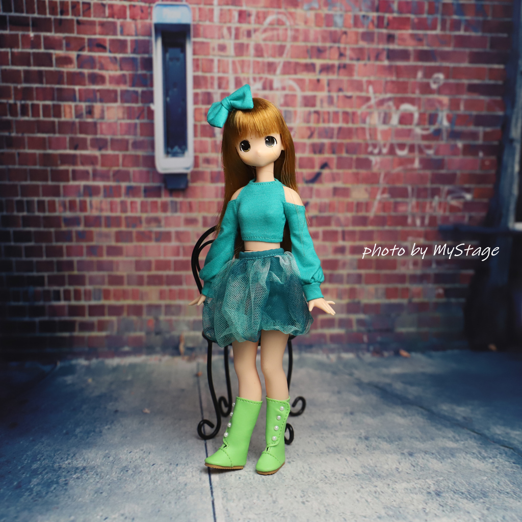- 人形服msdr-4945グリーンオフショルダーネックTシャツとバールンチュールスカート(ピュアニーモ用)