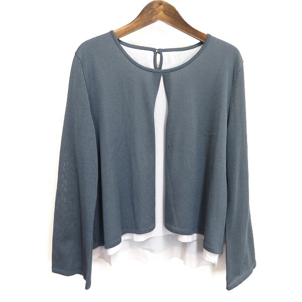 - #a レリアン Leilian カットソー 13+ ブルーグレー ライトグレー 重ね着風 13号 大きいサイズ 日本製 レディース [952781] k01