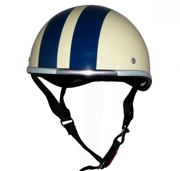> 新品 ZK-120 ダックテール(アイボリー/ネイビー)メッキモール ゴーグルバンド付き SG公認 125ccまで サイズ調整スポンジ付き S~L調整可