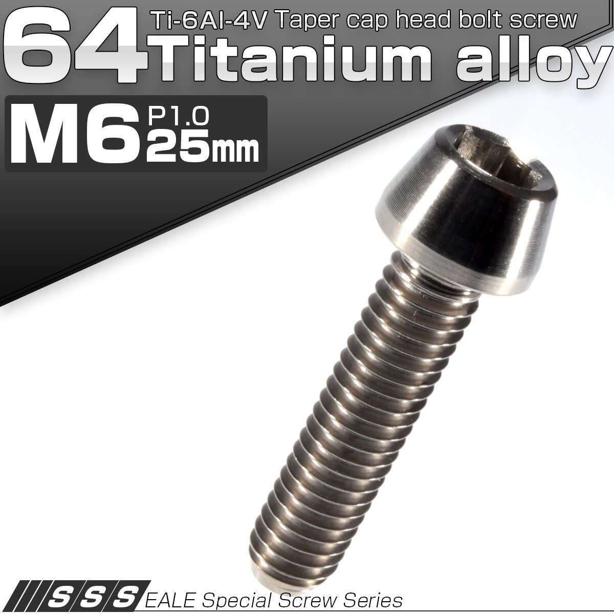 - チタンボルト M6×25mm P1.0 キャップボルト シルバー 六角穴付きボルト テーパー JA105