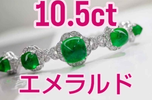 > 10.5ct 天然エメラルド シュガーローフブレスレット 18Kホワイトゴールド「緑の蛍光—— 10.5カラットが映す、成熟の美。」