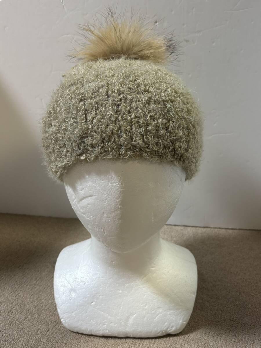 - 大滝ニット チャイニーズラクーン タヌキ ファー ニット帽 シンプル 定番 ボンボン付 ブークレビーニー/YC