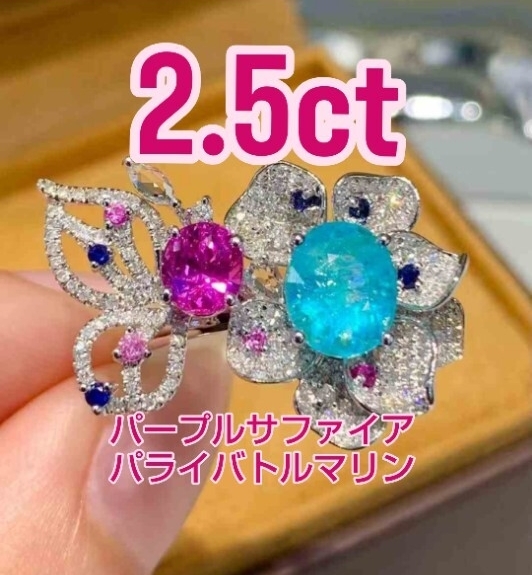 > 2.5ct 無処理無焼非加熱ノーヒートガラス質パープルサファイア & ネオンブルーパライバ リング 唯一無二の輝き光を纏う藝術品〜新品未使用