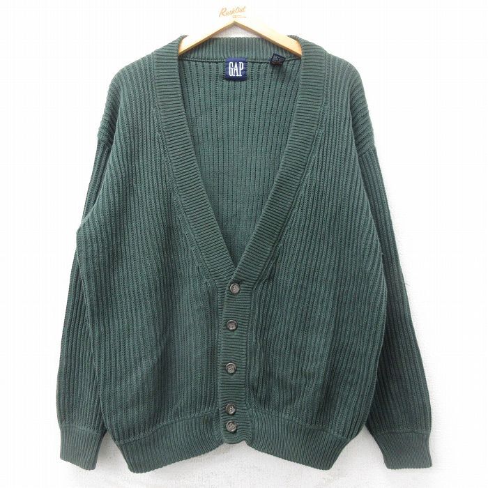 > XL/古着 ギャップ GAP 長袖 ニット カーディガン メンズ 90s コットン 緑 グリーン spe 25oct15 中古 トップス