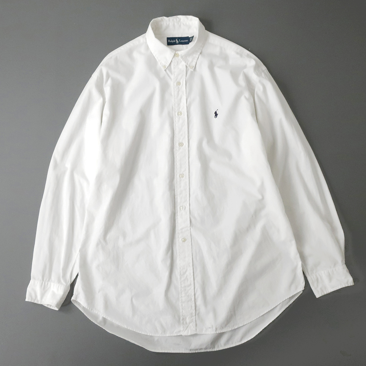 > 90s ラルフローレン RALPH LAUREN ボタンダウンホワイトシャツ ポニー刺繍 / 白シャツ (L)