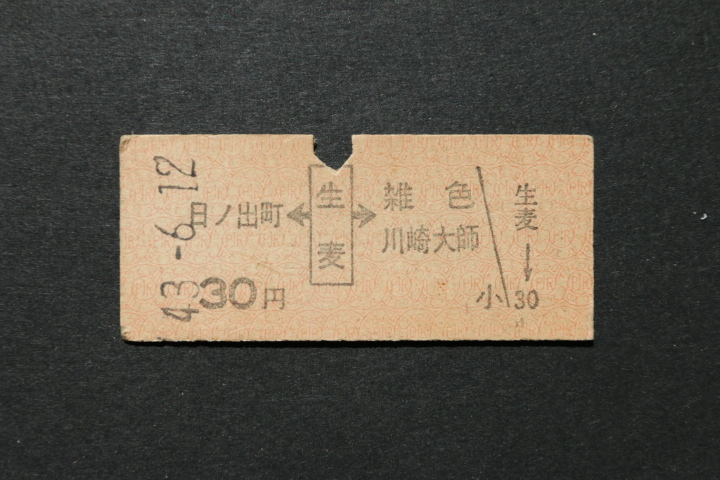 - 京浜急行電鉄 乗車券 日ノ出町←生麦→2駅 30円