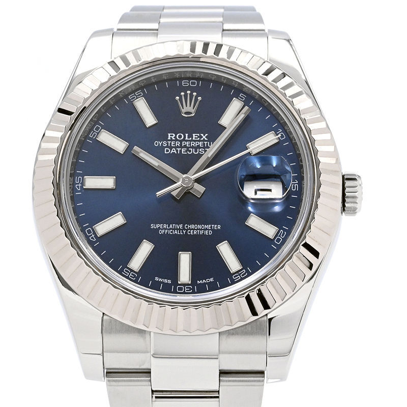 - [3年保証] ロレックス メンズ デイトジャスト II 116334 ランダム番 箱保 41mm バーインデックス ブルー 自動巻き 腕時計 中古 送料無料