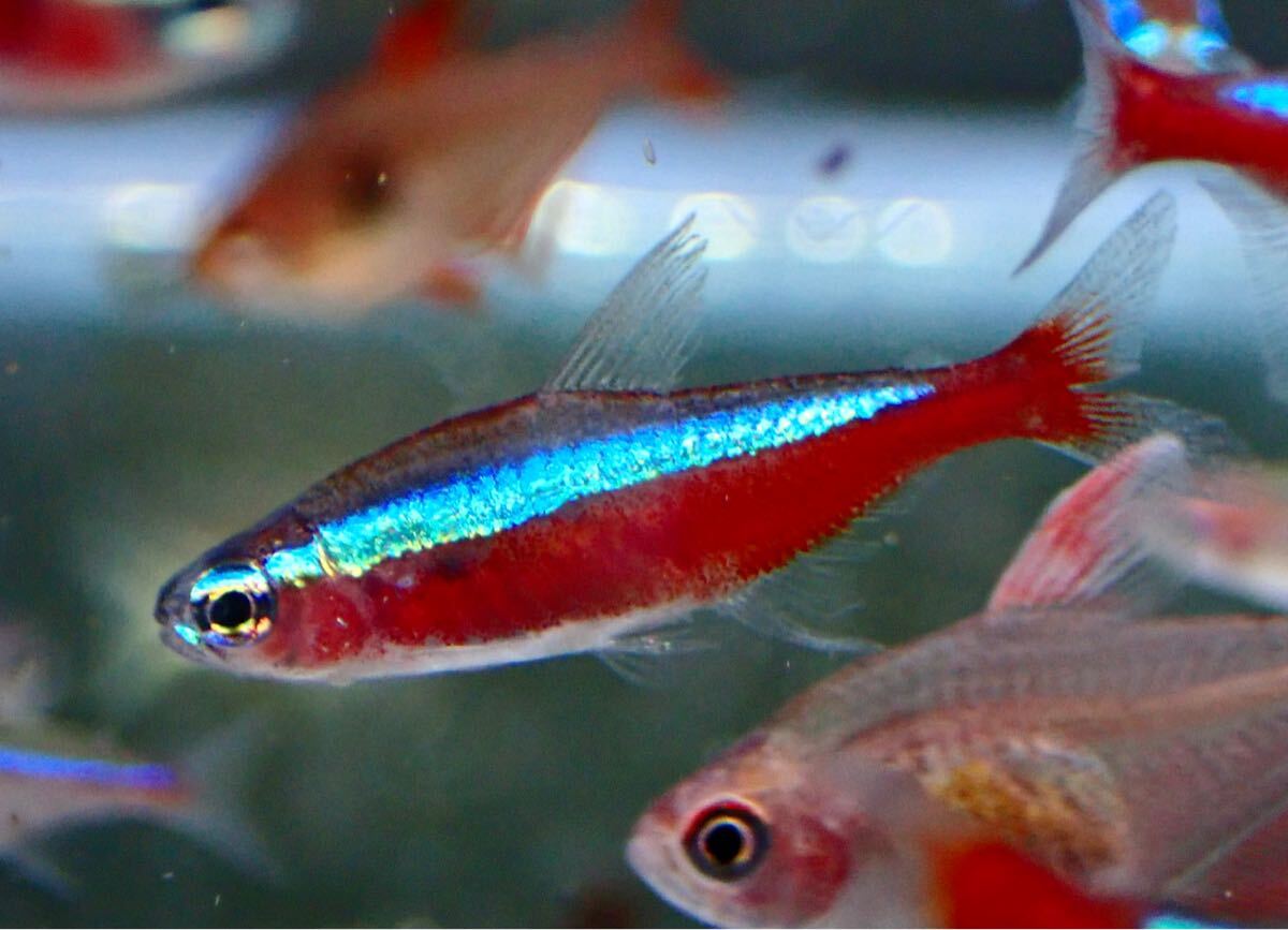 > 【アクアリウムのある暮らし】(熱帯魚) カージナルテトラ ブリード 100匹 サンプル画像 小型魚 水草 カラシン 淡水魚 4300