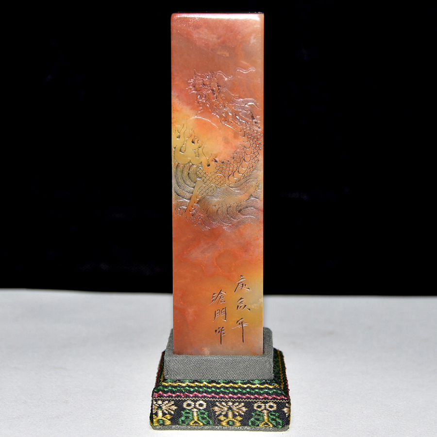 - ▽鴻▽清朝時代 寿山石彫 龍紋印章 滄門作 箱付 時代物 中国古美術 骨董品