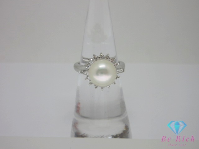 > 田崎真珠 TASAKI Pt900 プラチナ パール 真珠 9mm 珠 ダイヤモンド 0.43ct 付 デザイン リング 指輪 9.5号 【中古】【送料無料】 ba3538