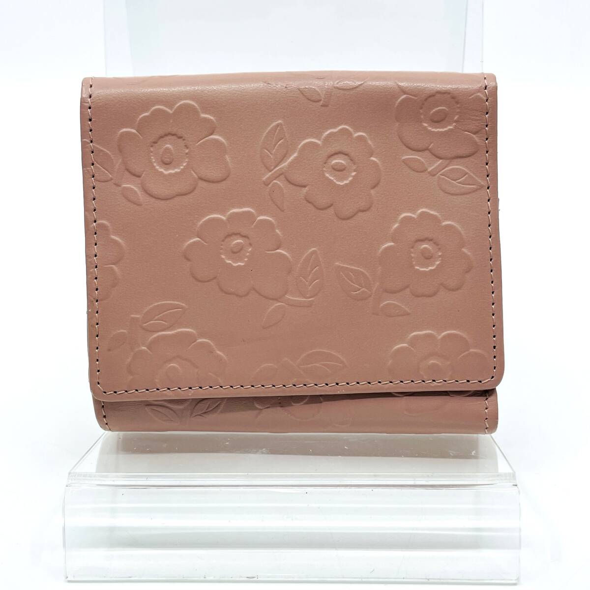 - Sybilla シビラ 二つ折り 財布 Wホック ピンクベージュ系 花柄 フラワー 型押し ボックス式コインケース カード入れ13 大容量