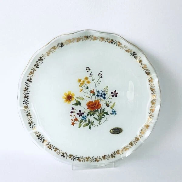 > フィエスタ FIESTA ガラスプレート 花柄 直径約32cm 中古 テーブルウェア 食器 インテリア