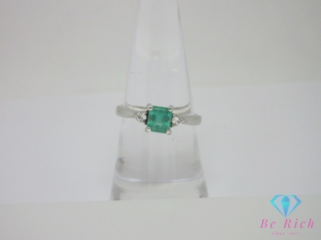 - Pt900 プラチナ エメラルド 0.63ct ダイヤモンド 0.08ct 付 デザイン リング 指輪 15号 メレ アクセサリー 【中古】【送料無料】th13644