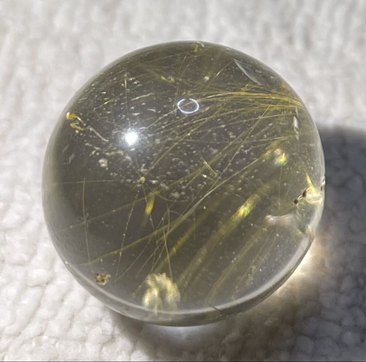 > タイチンルチルクォーツ 丸玉 059 水晶 クリスタル 天然石 魔除 財運 金運 パワーストーン 幸運 風水晶 ガーデンクォーツ共生
