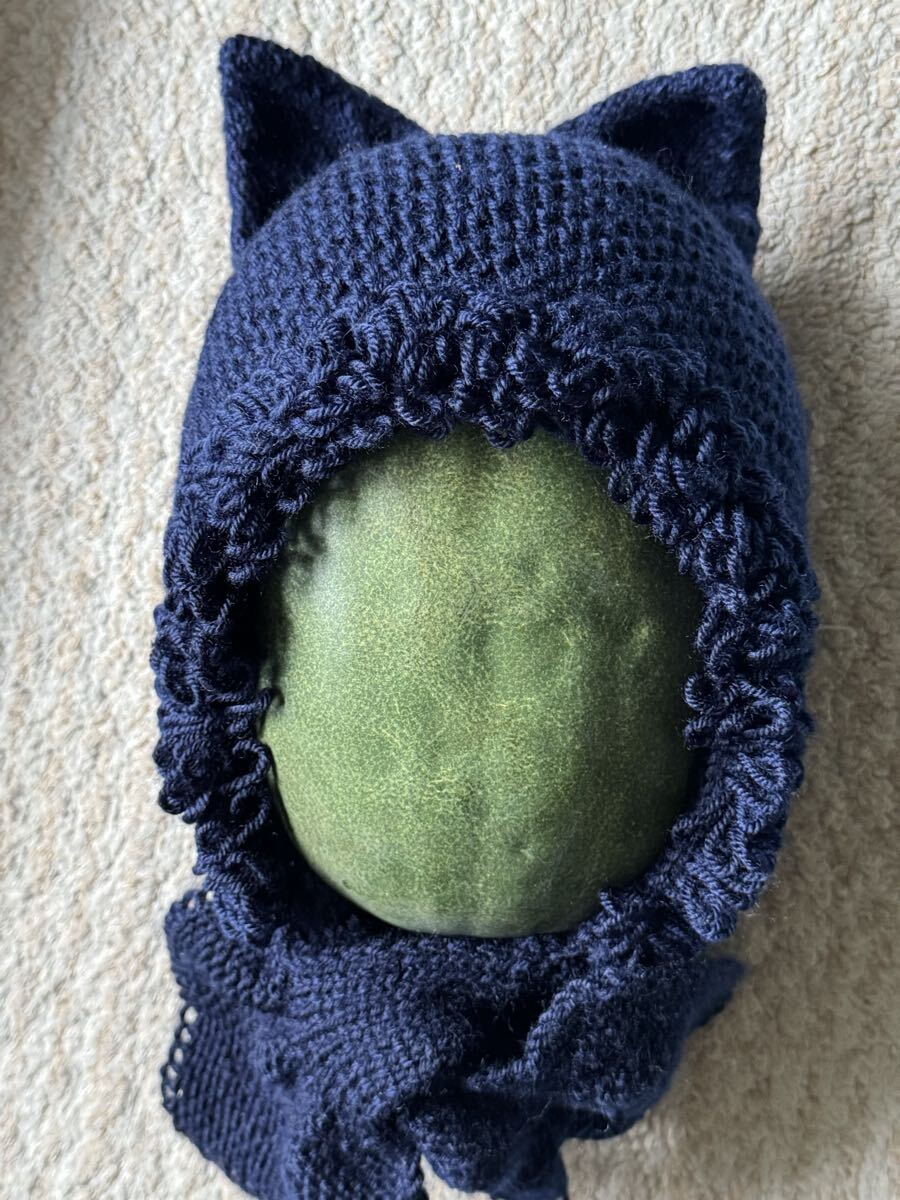 - ★手編み★安全!暖か! ニット帽 幼児 耳付き 帽子 動物 アニマル 日本犬 可愛い 48cm~53cm ネイビー 濃紺