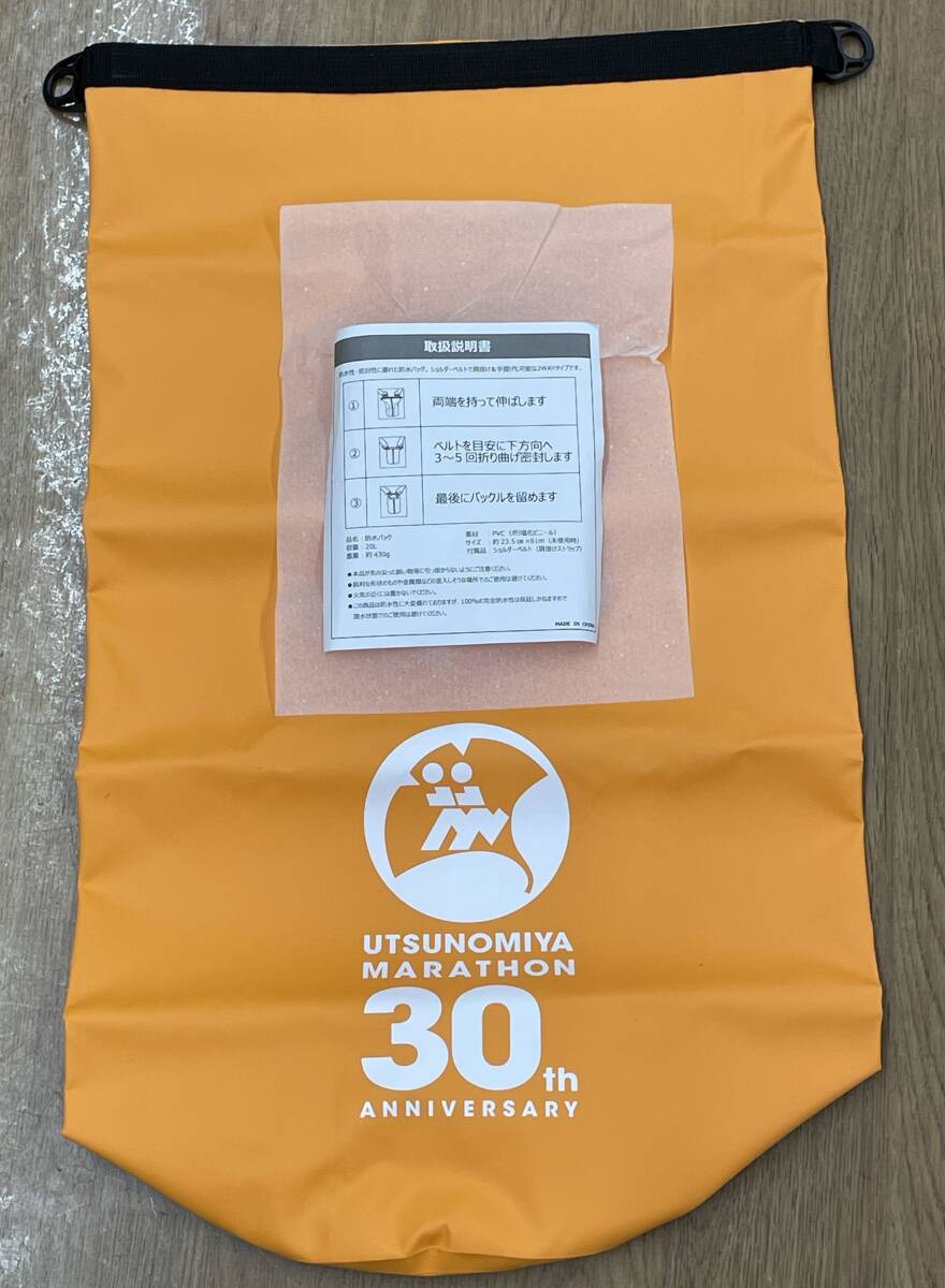 - 2378a【未使用品】【1円スタート】 防水バッグ 宇都宮マラソン30周年アニバーサリー ノベルティグッズ?20L 現状品 伝票直貼りで発送