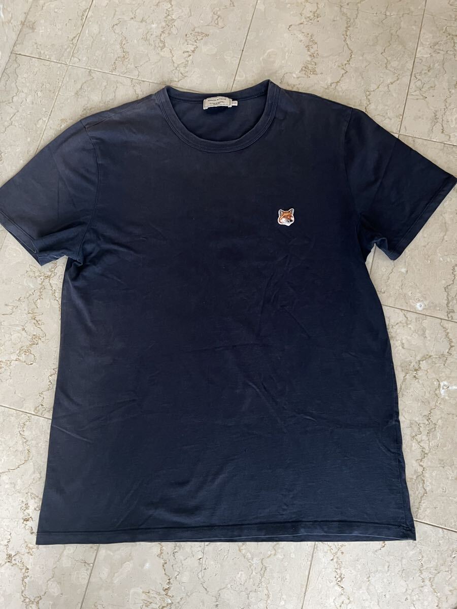 - メゾンキツネ★紺色 ネイビー Tシャツ Lサイズ USED♪c