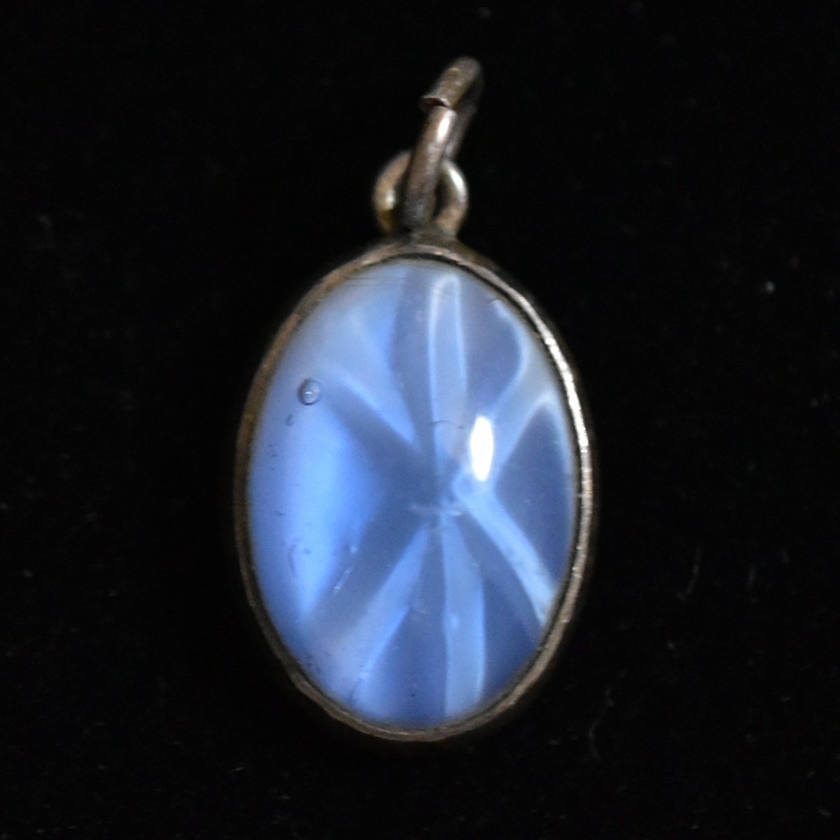 - アンティーク スターサファイア色古ガラスの純銀製ペンダントトップ/チャーム 刻印あり 20世紀初頭ごろ 本物保証