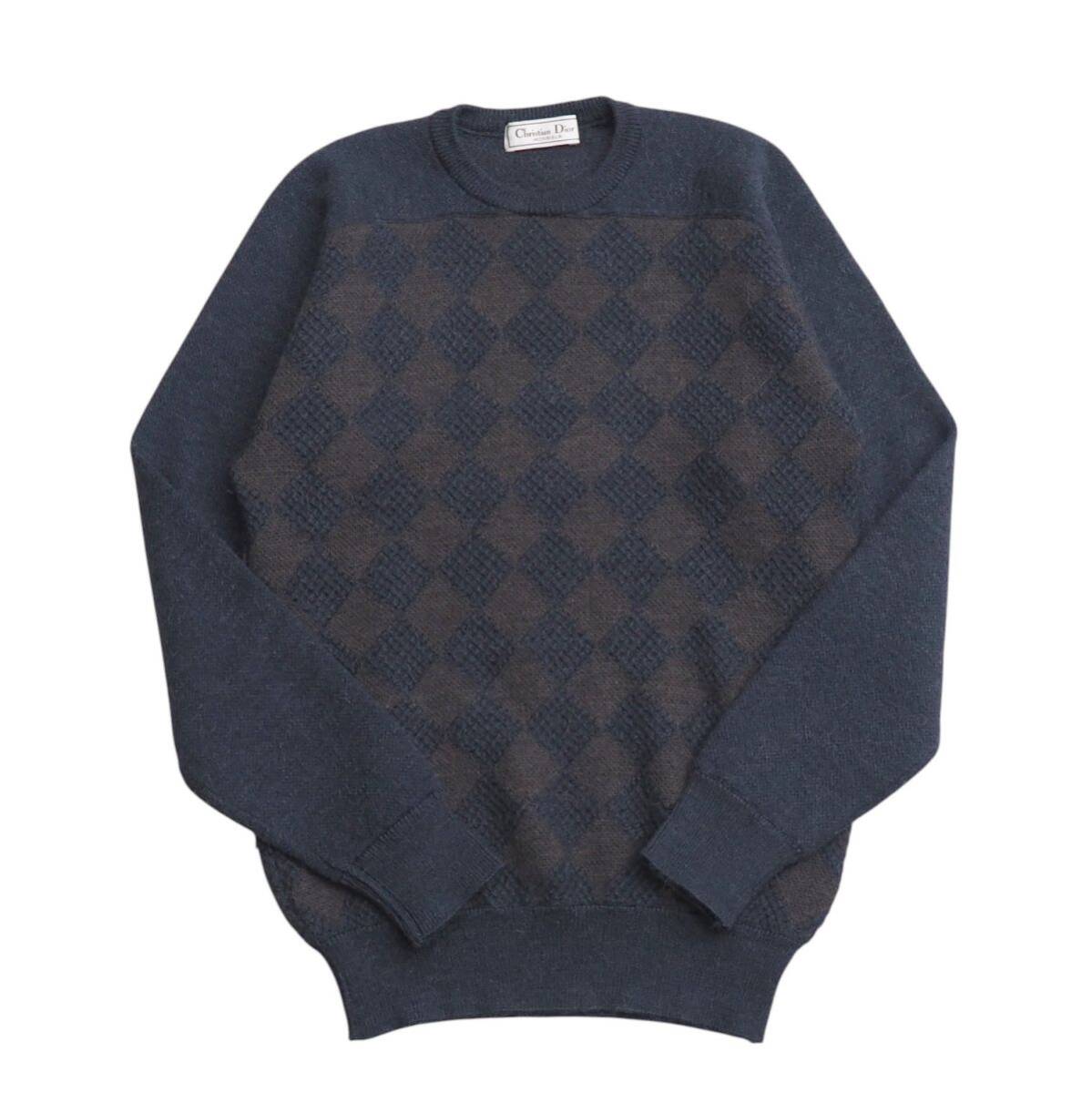 - TJ5446+ヴィンテージ*Christian Dior MONSIEUR/クリスチャンディオール*メンズM*アルパカ混*ウールニットセーター*ダイヤ柄*ネイビー系