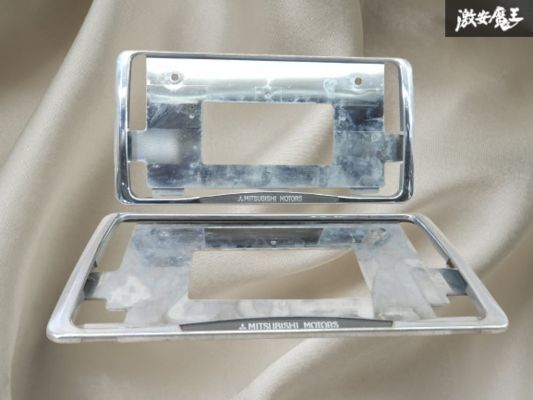 > 三菱 純正 MITSUBISHI MOTORS ナンバープレート フレーム 2枚 前後セット 穴間 約21cm 縦 約 17cm 横 約34cm 即納 在庫有 棚A-6
