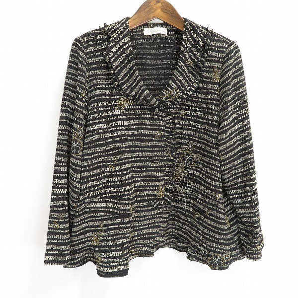- #a 詩仙堂 ヒトシタムラ ジャケット 黒 オフホワイト カラシ 鹿の子柄 総柄 和柄 和風 ちりめん 縮緬 フリルカラー 日本製 942909 k01
