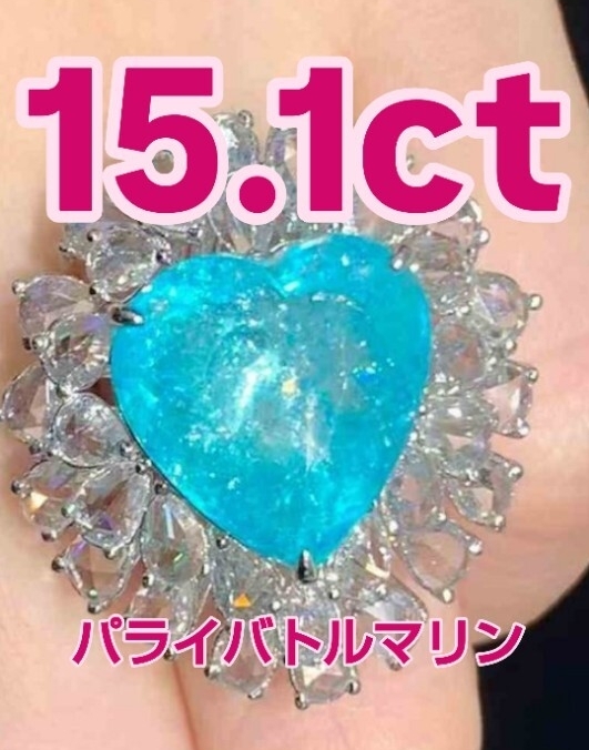 > 15.1ct ハート型 ネオンブルー パライバトルマリン 2WAYジュエリー リング ペンダント「大粒こそ正義―15.1カラットが証明する圧倒的価値」