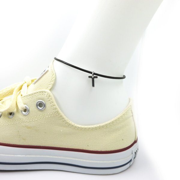 - T レザーアンクレット イニシャルチャーム付き ステンレス金具 25cm(21+4cmアジャスター)