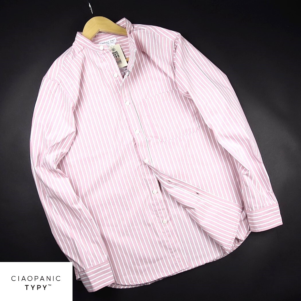 - 新品 ■ チャオパニック CIAOPANIC TYPY ストライプ バンドカラーシャツ 204A1/桃/【M】