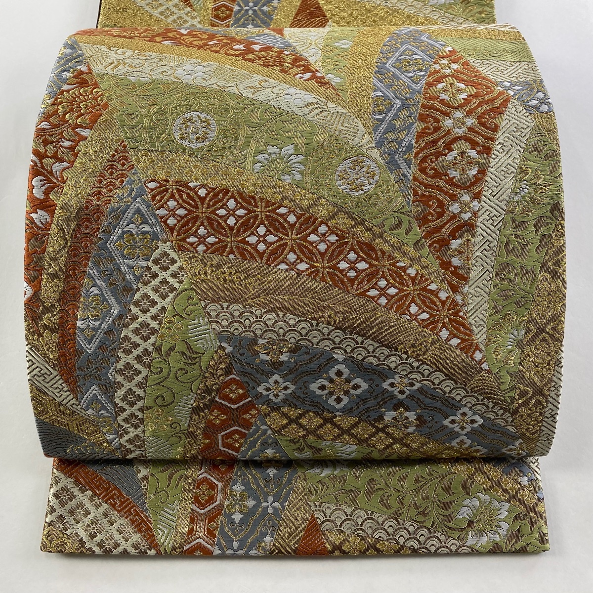 > 袋帯 秀品 七宝 草花 金糸 箔 金色 六通 正絹 【中古】