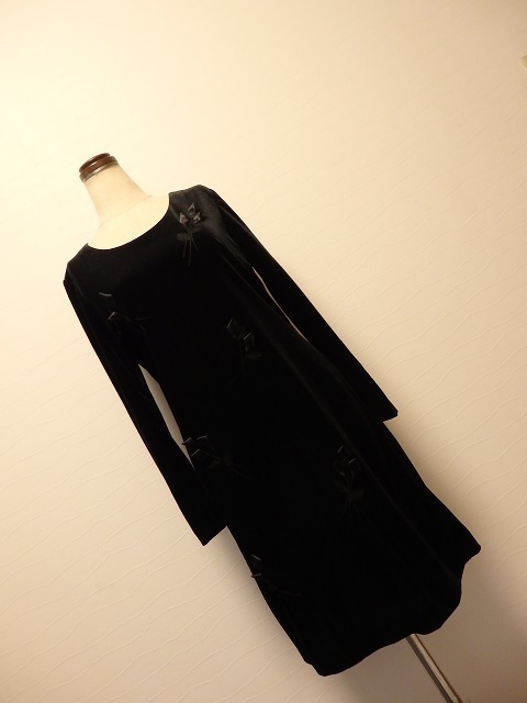 - 【美品】★ブランヌーボー お花モチーフ付ベロア黒ワンピース/結婚式、パーティにもクリーニング済★