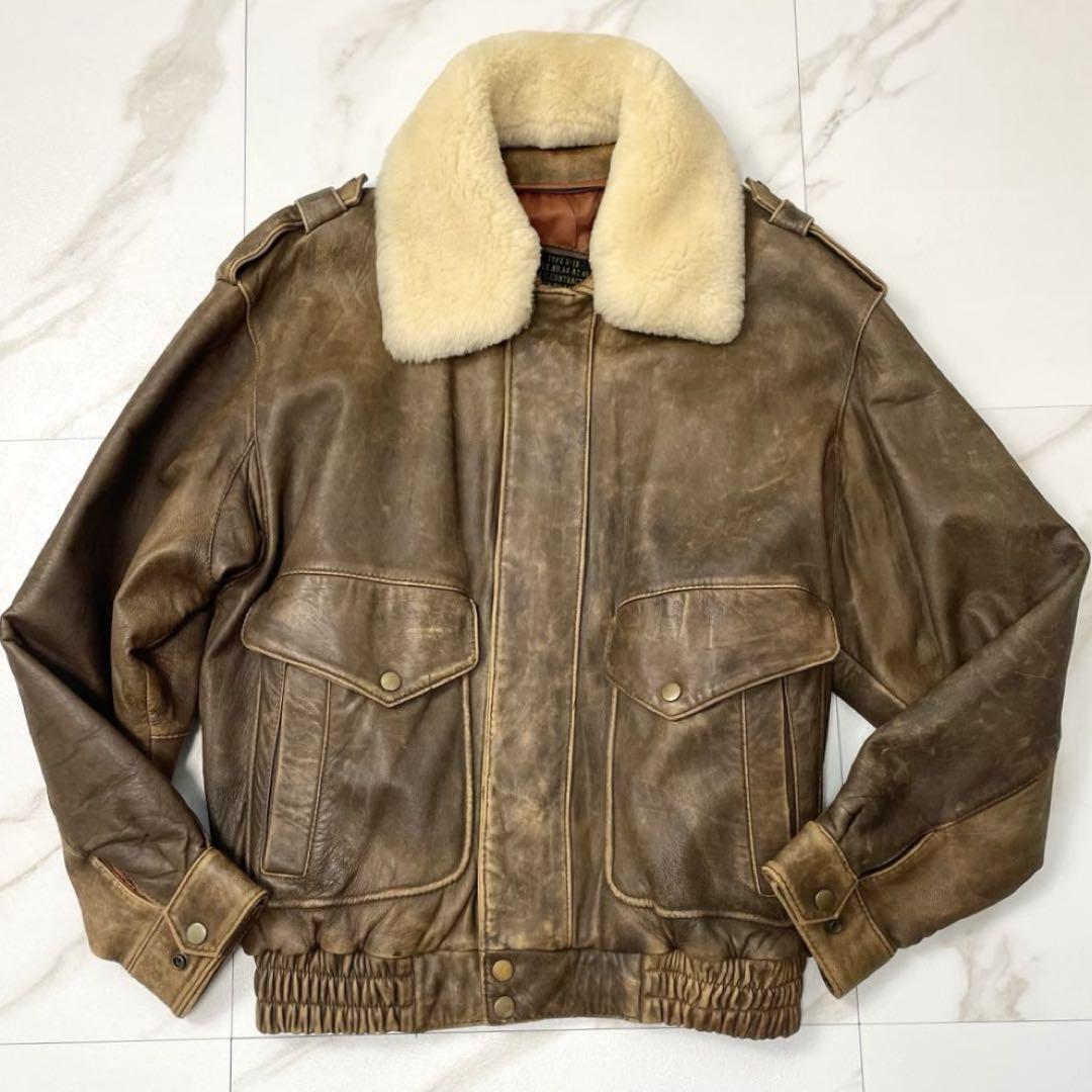 - 【羊革 XL相当】ヴィンテージ フライトジャケット G-1ラムレザー ブラウン 茶 シープスキン 革ジャン ムートン ボア ボンバー ブルゾン 40