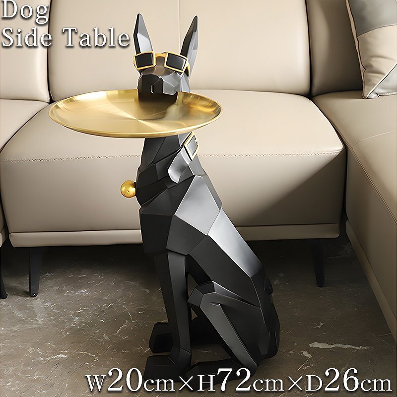 - サイドテーブル おしゃれ 北欧 テーブル ナイトテーブル アクセサリートレイ 収納 鍵置き 玄関 台 ソファ ベッド 高級 オブジェ 犬 UT-09BK