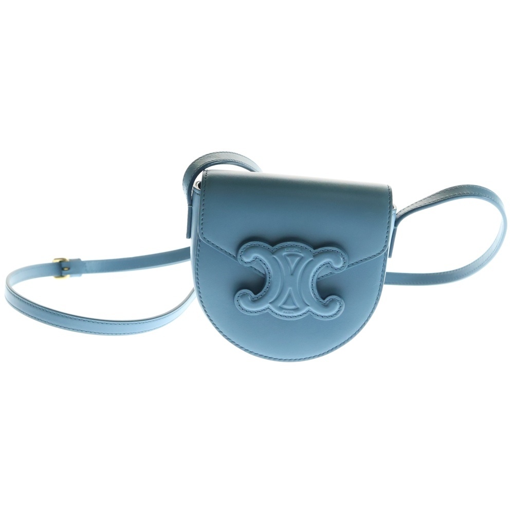 - CELINE セリーヌ トリオンフ ミニ ブザス ショルダーバッグ ショルダーポシェット ミニバッグ ブルー カーフレザー