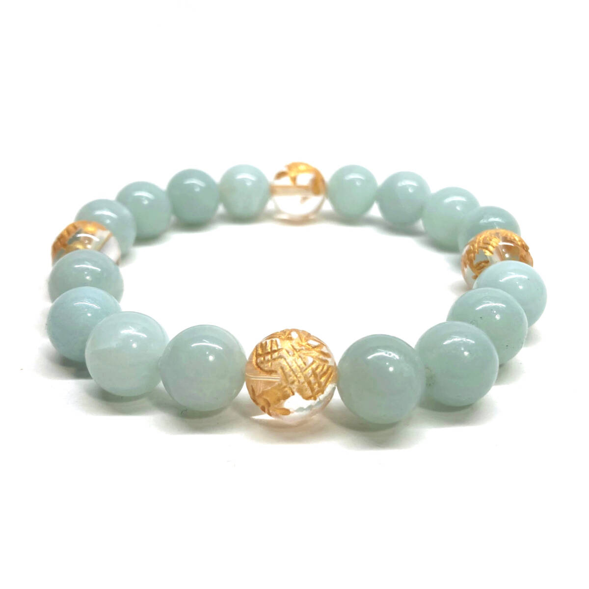 - 10mm 四神獣金彫水晶×アマゾナイト パワーストーン ブレスレット天然石 運気上昇 開運 金運 恋愛 青龍 白虎 玄武 朱雀 ☆
