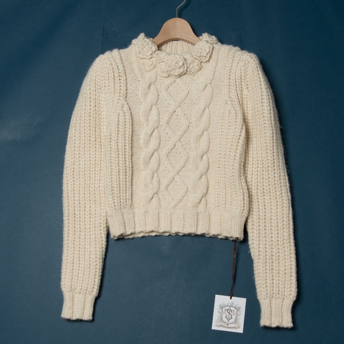 - 【1円スタート】タグ付き 未使用品 SEVENTEN セブンテン クロシェフラワーケーブルニット 長袖セーター Sサイズ 化繊 フェミニン オフ白