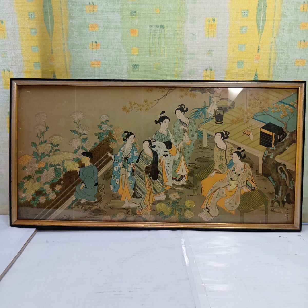 - 【送料無料】浮世絵 木版画 菊展示会美人6人 西川祐信作寛文11年(1671年) 横70×縦35cm(匿名配送)
