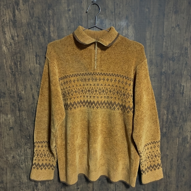 - C49◇IXIZ | イクシーズ ハーフジップ ニットセーター キャメル×ブラウン メンズ LLサイズ 中古品