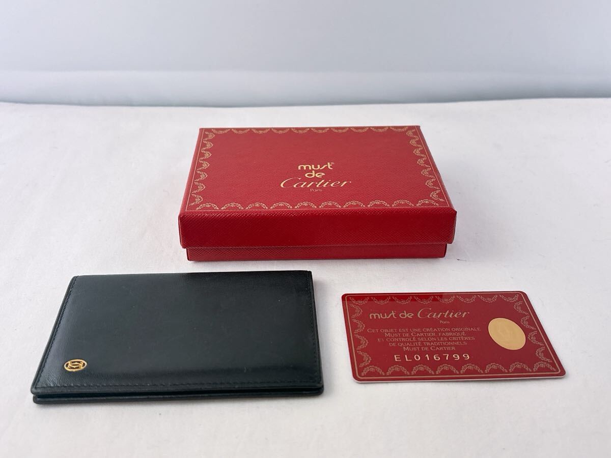 > Cartier カルティエ マストライン カードケース 名刺入れ ネイビー メンズ レディース ヴィンテージ ギャランティカード付き