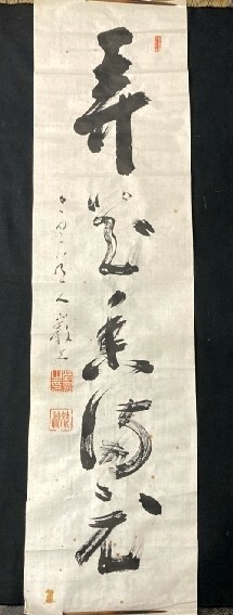 - 【模写】マクリ 真言宗 嵯峨大覚寺門跡大僧正 谷内清巌 一行書「弄花香満衣」紙本 検)墨蹟/茶掛け/茶道具/掛け軸/禅語/京都