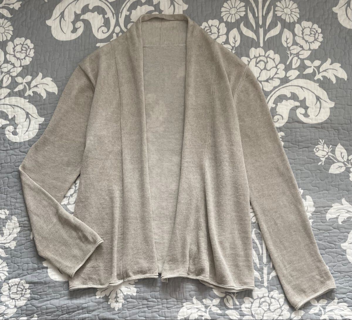 - pristine 綿麻 カーディガン オーガニックコットン ショールカラー ベージュ リネン 綿 プリスティン M 日本製