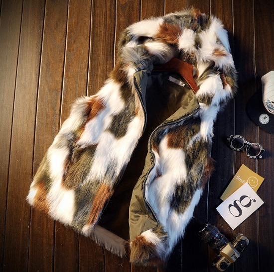 - ファーベスト♪新品 メンズ フード付き 厚手 高級 狐毛皮 フェイクファー 紳士 アウター 秋冬 お洒落 サイズ選択可 /Lサイズ