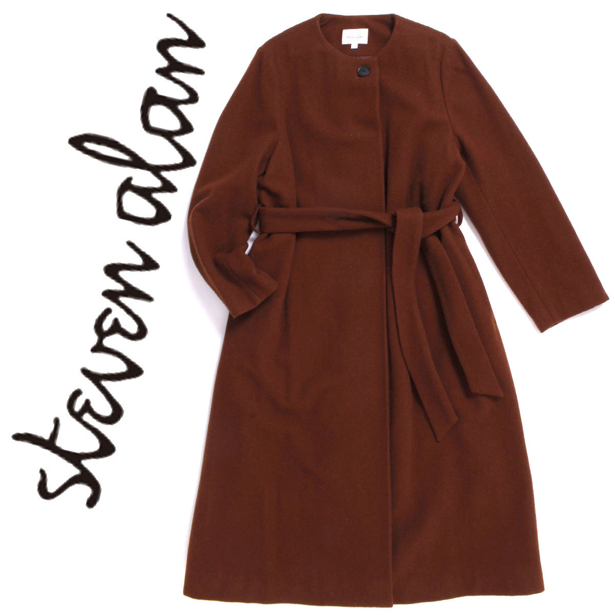 - スティーブンアラン Steven Alan MELTON NO COLLAR COAT 定価50,600円 sizeS ブラウン メルトン ノーカラーコート