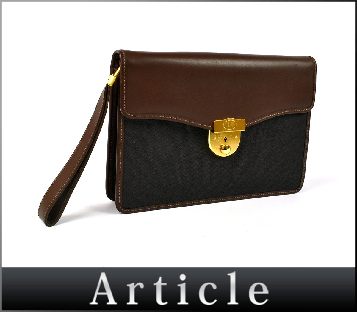 > 238569◆ dunhill ダンヒル セカンドバッグ クラッチバッグ 鞄 バッグ PVC レザー 革 ブラック ブラウン ゴールド金具 メンズ/ B