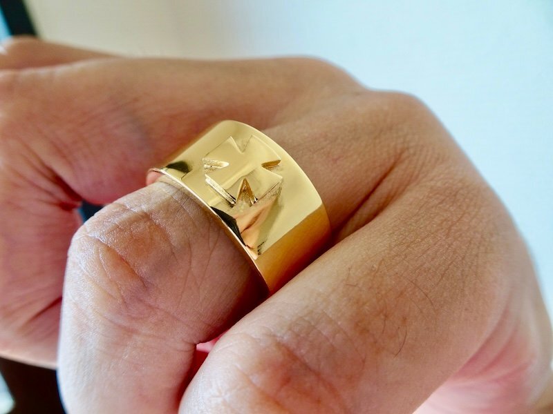 - 仁尾彫金『k18ゴールド、平打アイアンクロスリング』ハンドメイド412