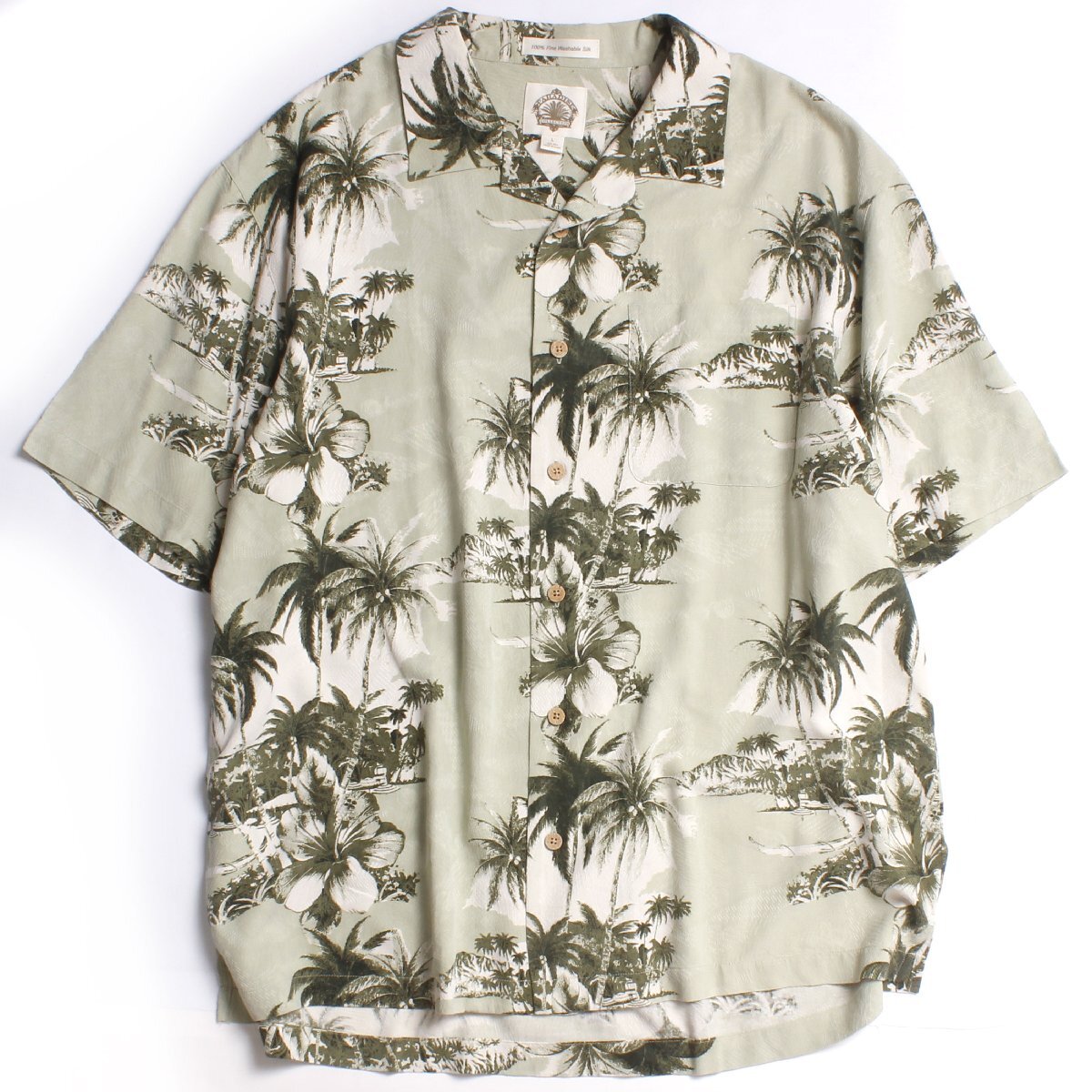 - PARADISE COLLECTION シルクアロハシャツ sizeL グリーン パラダイスコレクション オープンカラーシャツ