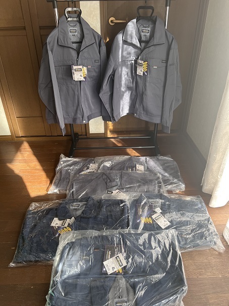 - 作業着 meteora 秋冬4L:グレ-開封未着品2枚・未開封3枚 ネイビ-未開封3枚 (一応ジャンク)