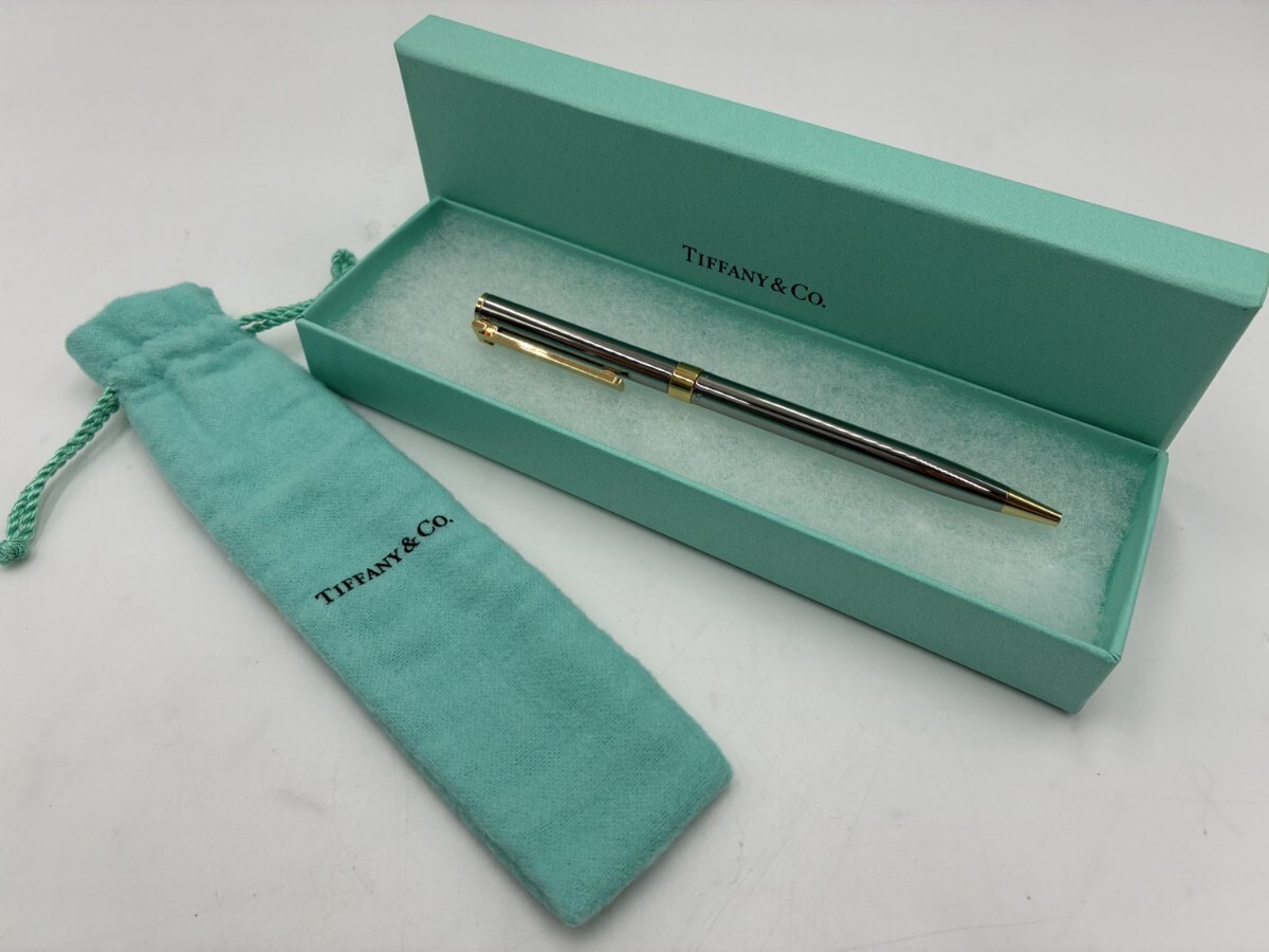 - 1円スタート TIFFANY&Co. ティファニー ボールペン Tクリップ ツイスト式 シルバー×ゴールド 箱付 袋付 AY1019-16