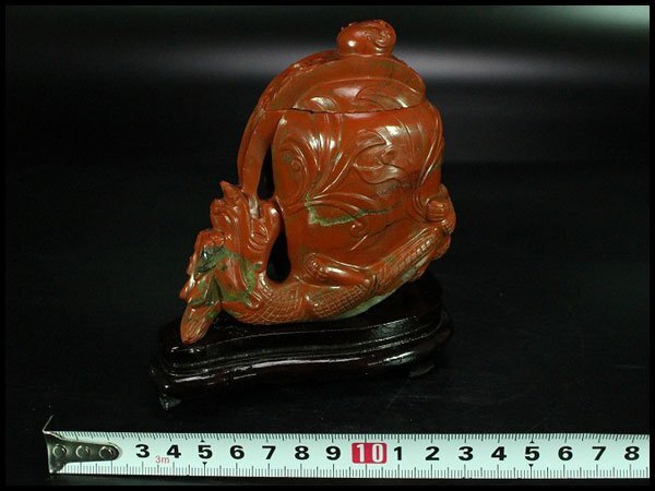 - 【金閣】中国美術 孔雀石 刻龍 蓋物 置物 飾 高10.5cm 旧家蔵出 送料無料(XA688)