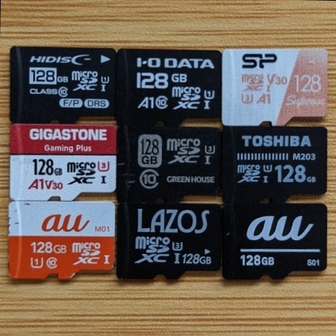 > 128GB microSDカード 9個 まとめセット au TOSHIBA sp 現状動作品 ガラケー スマホ デジカメ ビデオカメラ等 クイックフォーマット済